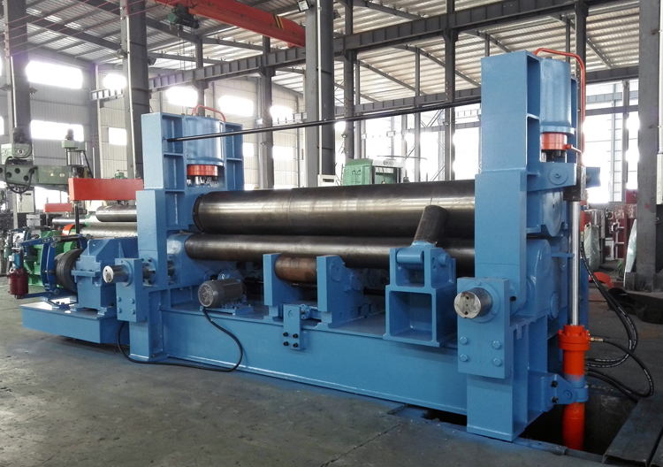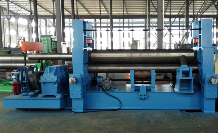上輥成鼓形狀,下輥的下部有托輥配合調節,從薄板到厚板這一廣泛的范圍內能夠卷制直線度很高的制品;
