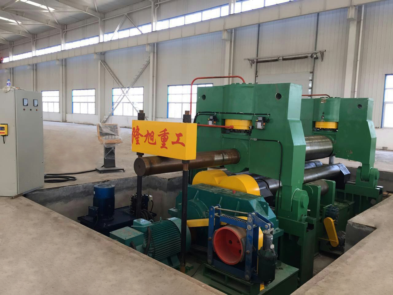 上輥成鼓形狀,下輥的下部有托輥配合調(diào)節(jié),從薄板到厚板這一廣泛的范圍內(nèi)能夠卷制直線度很高的制品;